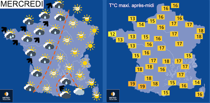Prévisions METEO-VILLES pour la journée de mercredi