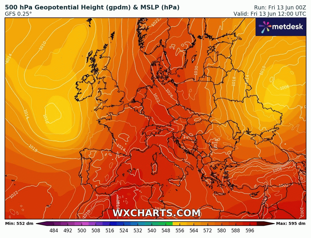 Animation des géopotentiels sur la France du 13 au 20 juin 2025 – Modèle GFS via WX CHARTS
