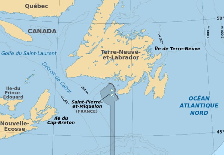 Situation géographique de Saint-Pierre-et-Miquelon dans l'Atlantique-nord - carte wikipedia