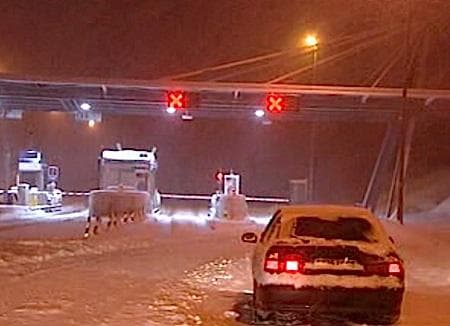 Récit d'un naufragé de la route, près de Brix (Manche) : "nous allons a la centrale nucléaire de Flammanville. Mal informé, nous empruntons la RN13 le 11/03/13, entre 18h et 20h, mais nous ne pouvons plus avancer. Nous passons la nuit sans assistance, ni eau, ni de nourriture, ni d'information sauf la radio locale ! (inadmissible)"