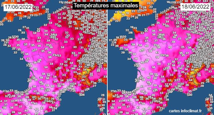 Températures maximales des 17 et 18 juin 2022, canicule la plus précoce ! - via infoclimat.fr