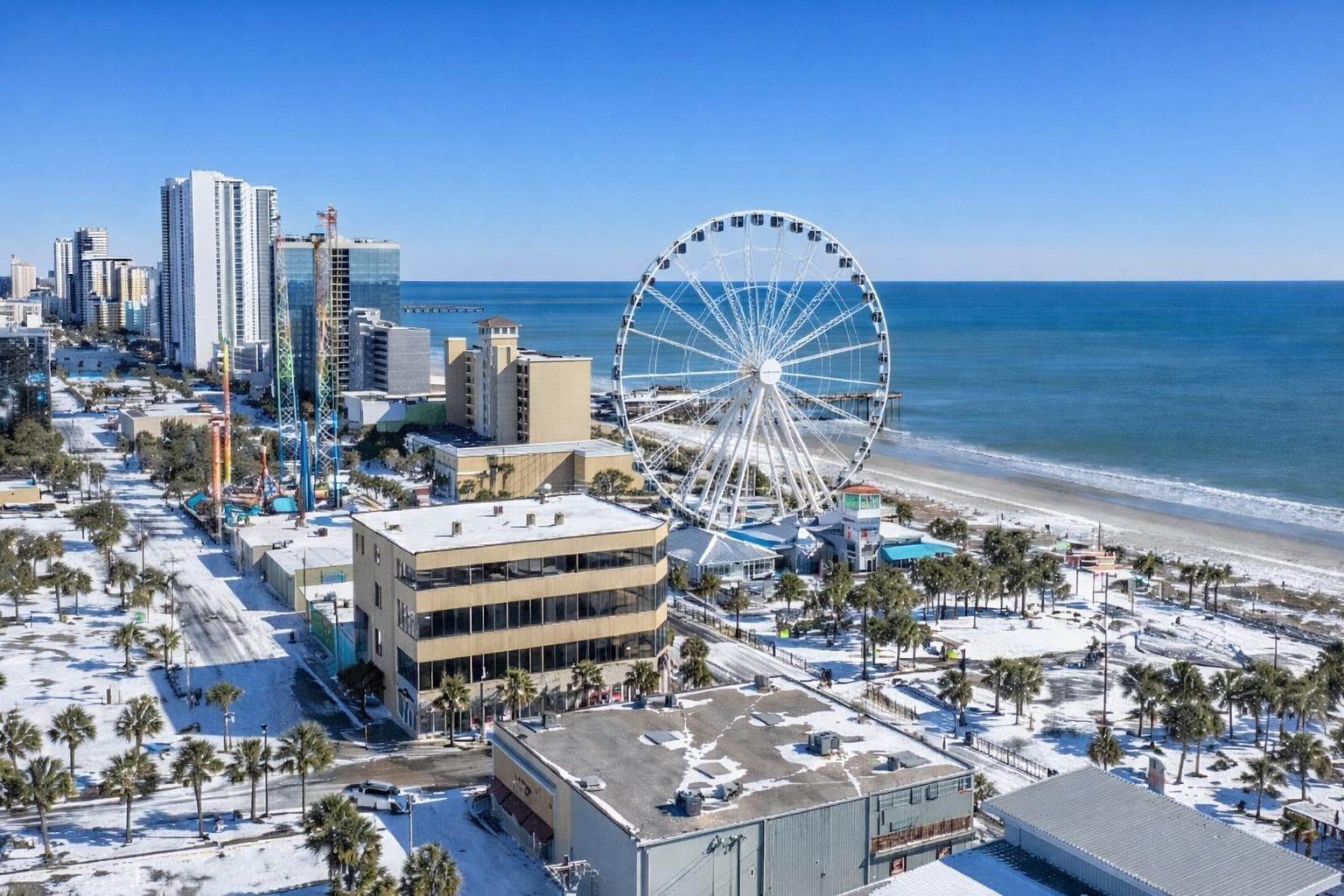 De la neige est tombée jusque sur le littoral de Myrtle Beach en Caroline du Sud ce 1er février 2026 - Via Twitter @MyMyrtleBeach