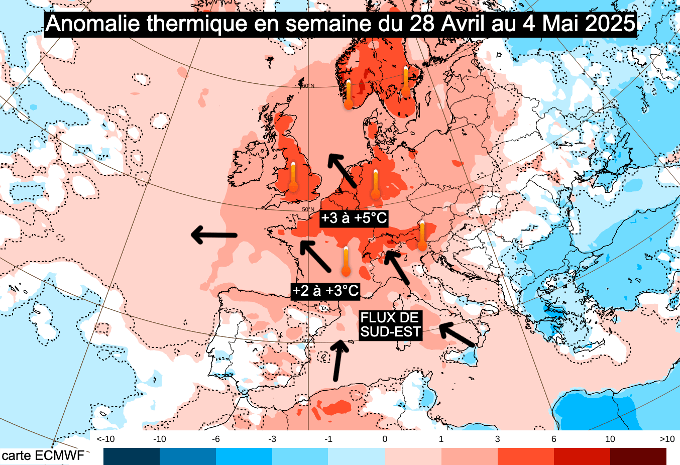 Anomalie thermique en semaine du lundi 28 avril au dimanche 4 mai 2025 - ECMWF