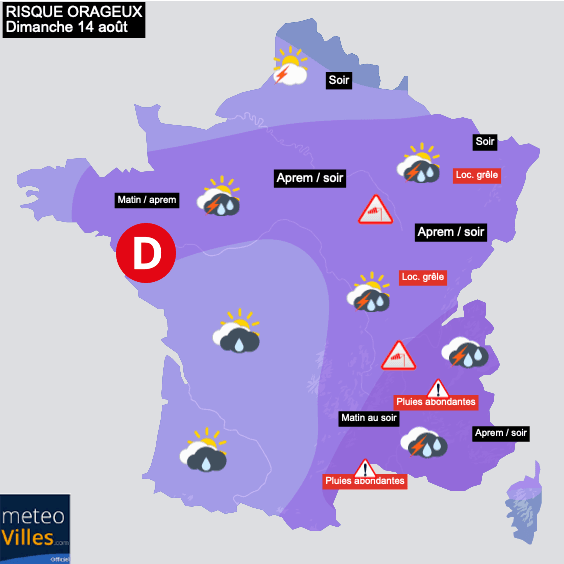 Risque orageux entrevu - journée du dimanche 14 août 2022 - Météo-Villes