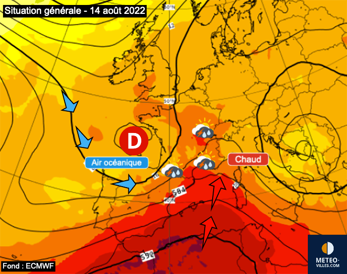 Situation générale prévue - dimanche 14 août 2022 - Météo-Villes / ECMWF