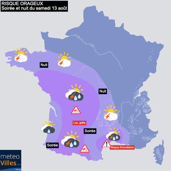 Risque orageux entrevu - soirée et nuit du 13 au 14 août 2022 - Météo-Villes