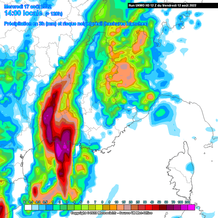Signaux de violents orages fortement pluvieux en basse vallée du Rhône - mercredi 17 août 2022 - Modèles UKMO et ICON-EU via Meteociel