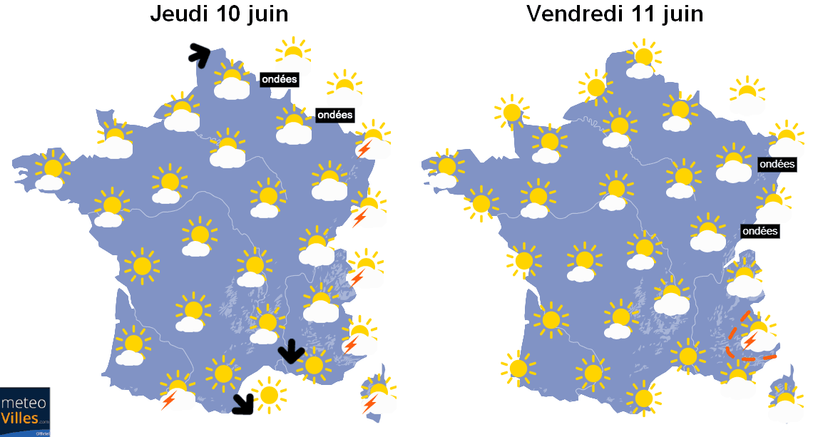Temps sensible prévu sur la France entre le jeudi 10 et le vendredi 11 juin 2021 – Météo-Villes