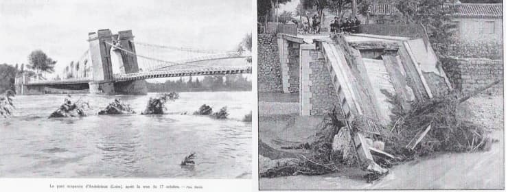 Les ponts d'Andrézieu (Loire) et de Valence (Drôme) détruits en octobre 1907