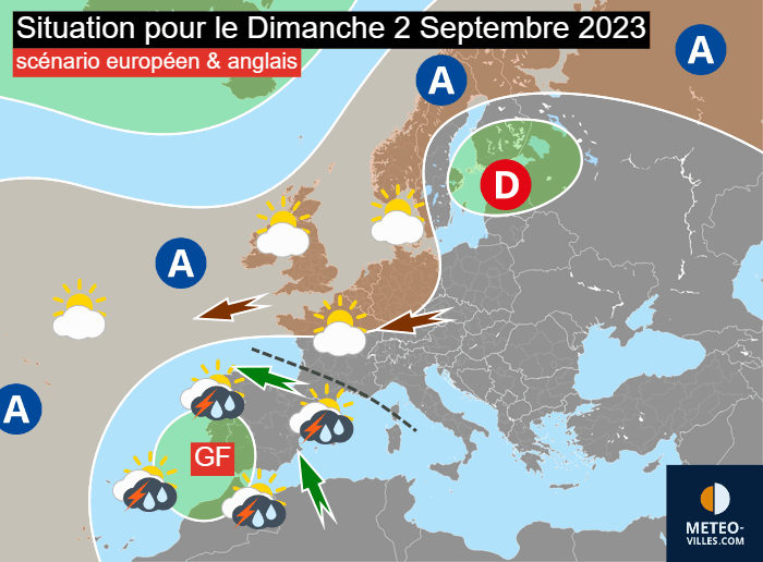 Situation pour le dimanche 3 septembre 2023 selon les modèles européen & anglais - Météo Villes