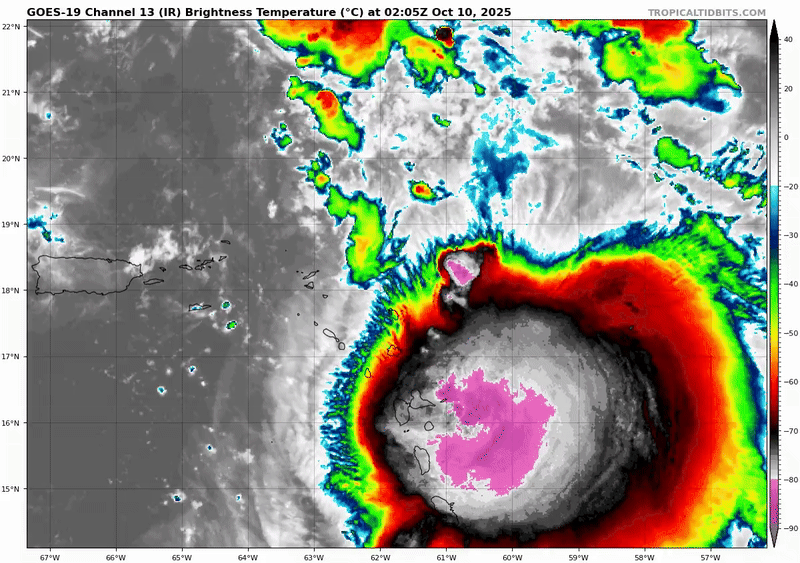 Animation satellite du 10 octobre 2025 en début de journée sur les Petites Antilles – GOES-19