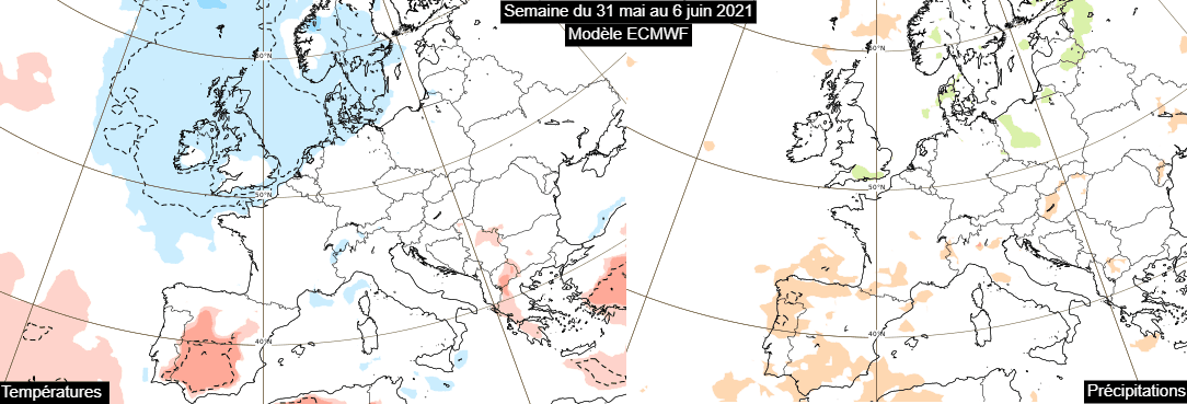 Anomales de températures et de précipitations durant la semaine du 31 mai au 6 juin 2021 – Modèle ECMWF
