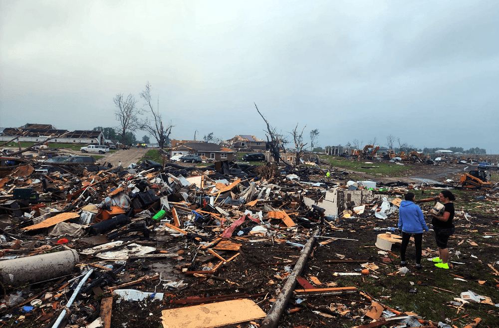 Maisons rasées par la tornade à Greenfield le mardi 21 mai 2024 - photo Curtis Pruitt