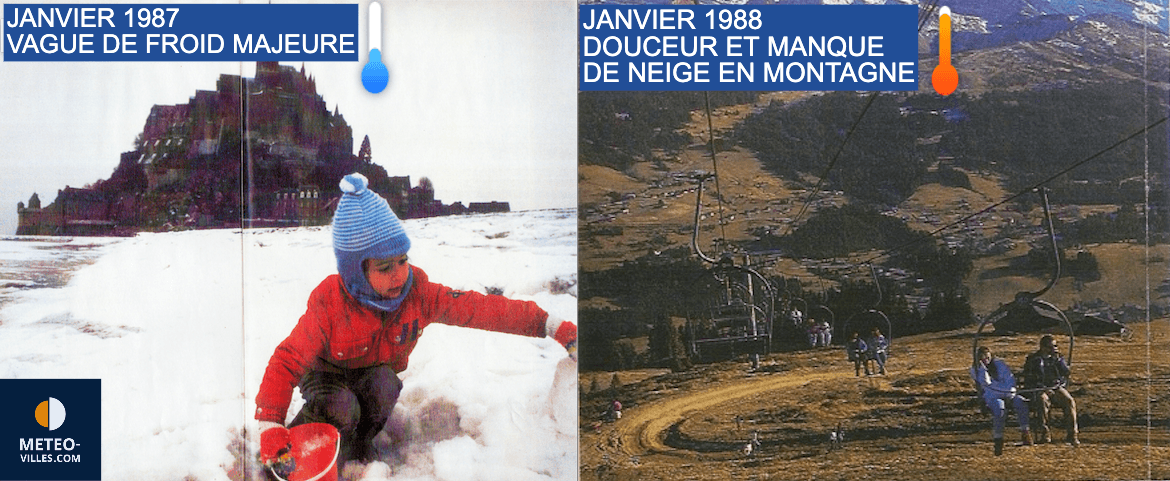 Les températures ont commencé à s’affoler après l’hiver 1987 qui fut particulièrement rigoureux. Janvier 1988 est au contraire sec et très doux, notamment au mois de janvier - à tel point que les stations de sports d'hiver manquent de neige en pleine saison de ski.
