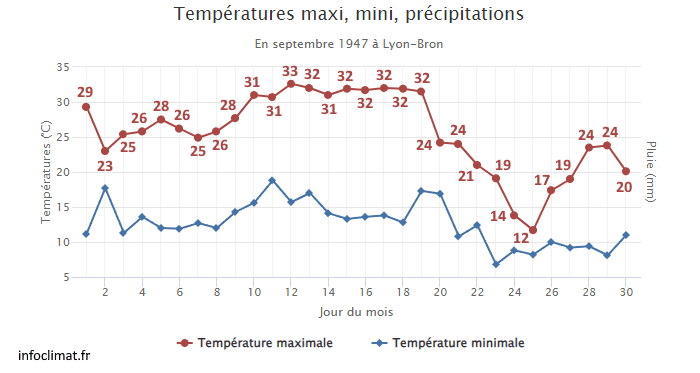 Températures mesurées à Lyon au mois de septembre 1947 - graphique infoclimat.fr