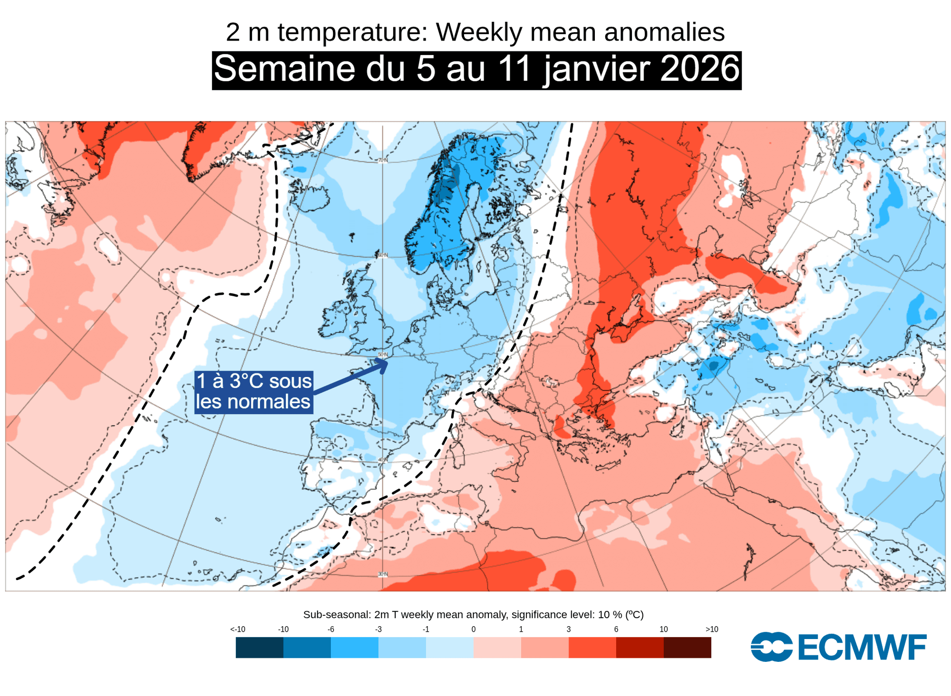 Anomalies de températures pour la semaine du 5 au 11 janvier 2025 – ECMWF